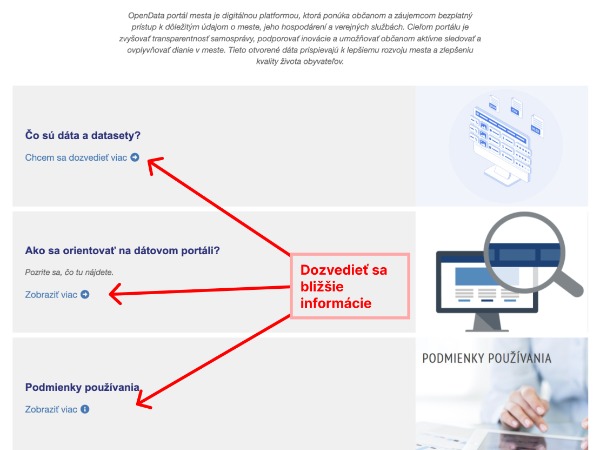 Na "O webe" sa dozviete základné informácie a činnosti OpenData portálu, nájdete tu manuál a podmienky používania portálu.